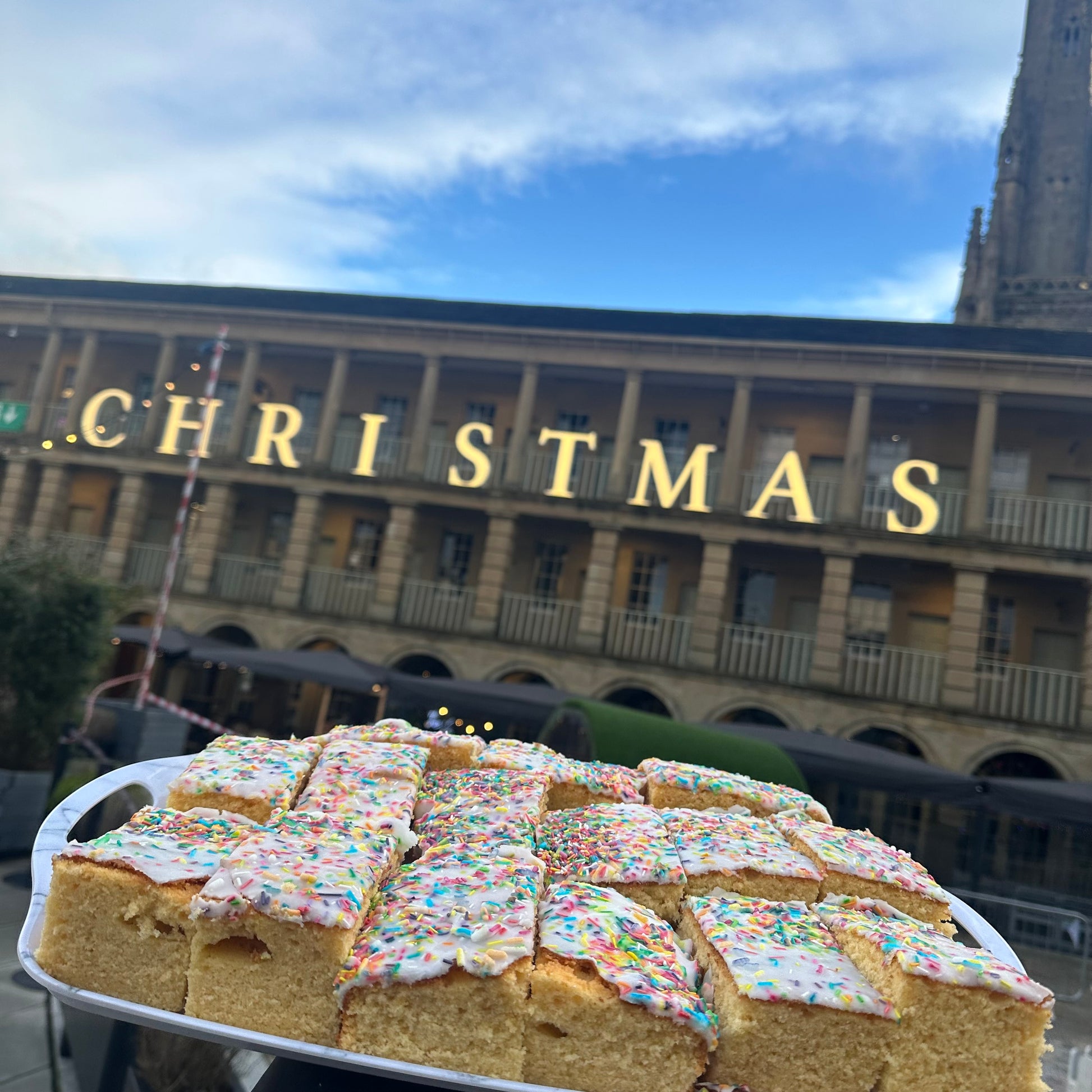 LARGE Old School Sponge Tray would cut into 10 slices regular sized slices we serve instore - or cut into mini slices